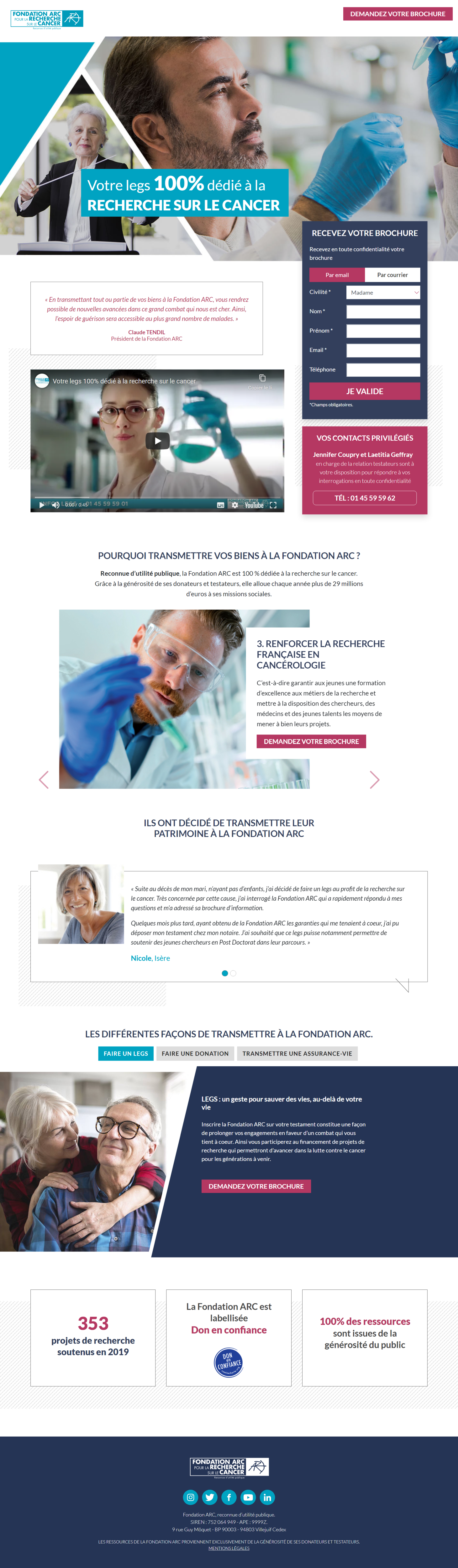 Fondation ARC – Votre legs 100% dédié à la recherche sur le cancer Client Fondation ARC Type Site Web Le projet Réalisation d’un site de demande d’information legs pour la Fondation Arc afin d’accompagner leur campagne 360°. En vidéo Projet précédent ⟵ Projet suivant ⟶ L’équipe One Heart est impatiente de découvrir votre projet 🥳